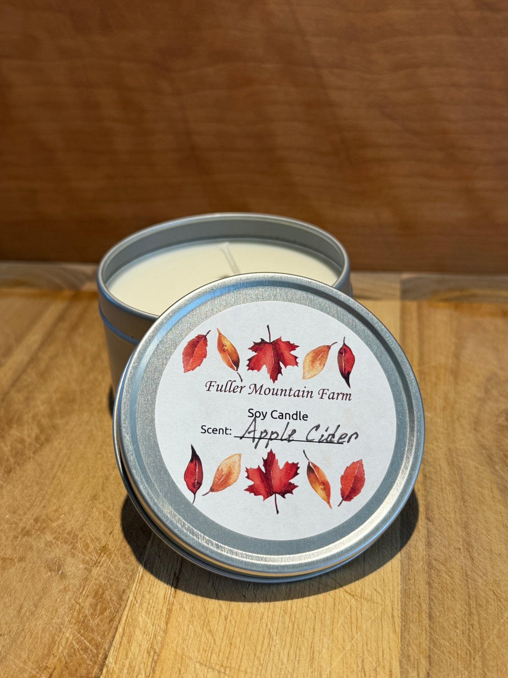 Enjoy the wonderful scents of Fall with our hand-poured soy candles. All natural, eco-friendly 5 oz. candles in metal tin. Clean, long-lasting burn. Available in three home-warming scents!